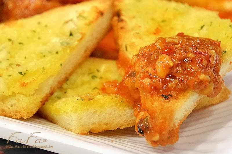| 法式干燒海蝦NT$360 群星會的干燒海蝦特別的融合法式吐司,吐司表面應該是有先沾蛋液在塗抹蒜泥醬, 烤的酥脆不乾不硬,搭配以蒜茸、豆瓣醬及主廚特調番茄醬製作而成的干燒醬, 吐司可以減緩醬汁鹹滋滋的味道。 |