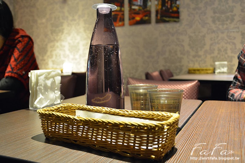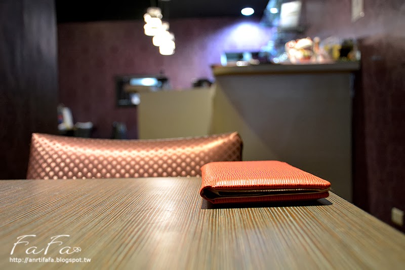 | 最後方則是廚房、飲料吧檯及結帳台。 屬於比較神秘色調的地方,壁紙都轉換為紫色系 |