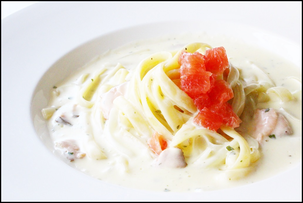 麵吃起來奶味濃而不膩,不過鮭魚對不是很愛吃魚的我會覺得有點腥