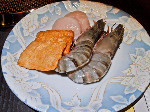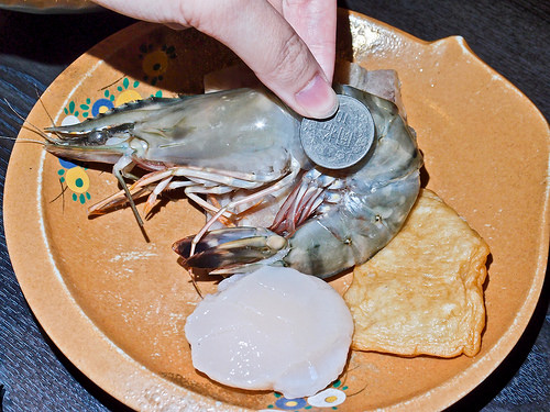 兩隻巨大的蝦, 干貝,甜不辣