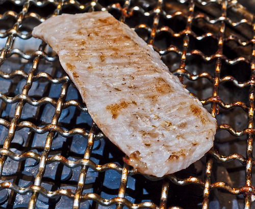 燒肉的重點在於, 炭爐的溫度夠高, 就很容易可以把肉的表面煎到微焦, 溶化的油花會有很香的焦香味