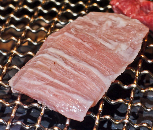 有著上好油花的肉用炭火烤到半熟,油脂被烤到微焦, 那股香味就算路過也會讓人肚子餓