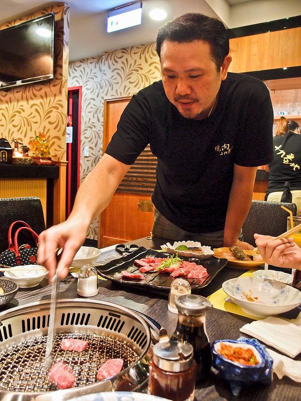 過程中大概是老闆嫌我們老是烤太熟, 看不下去, 親自來幫忙烤肉