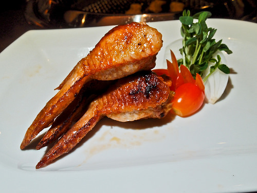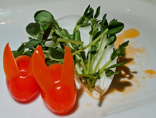 這道就是把明太子塞到雞翅裡, 再拿去烤, 旁邊的蔬菜裝飾很特別, 把小蕃茄作成兔子狀
