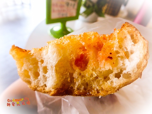 野上的法國真的有夠硬夠脆的哪~牙齒先跟麵包外殼進行一段頑強的抵抗、