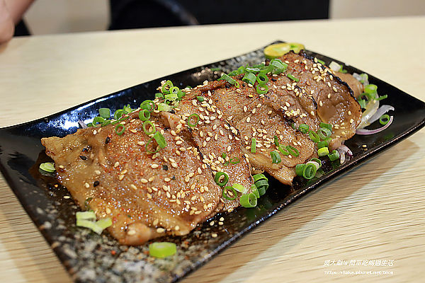 ↑烤得恰到好處,肉質有彈性,撒上蔥花跟芝麻,增添更多風味