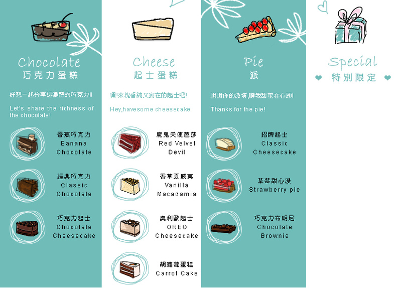 有巧克力蛋糕、起司蛋糕和派的選擇,