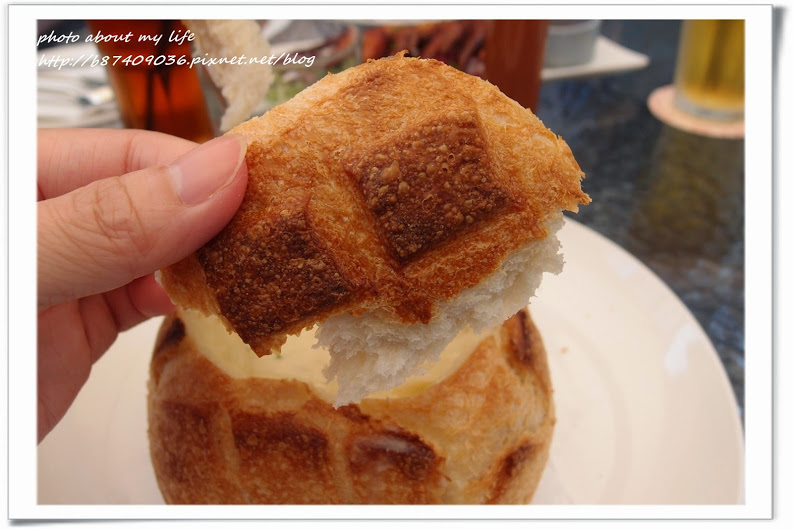 用龍蝦頭熬湯底的海鮮湯 濃湯的大麵包碗 吼~對我這美式料理控來說太犯規啦