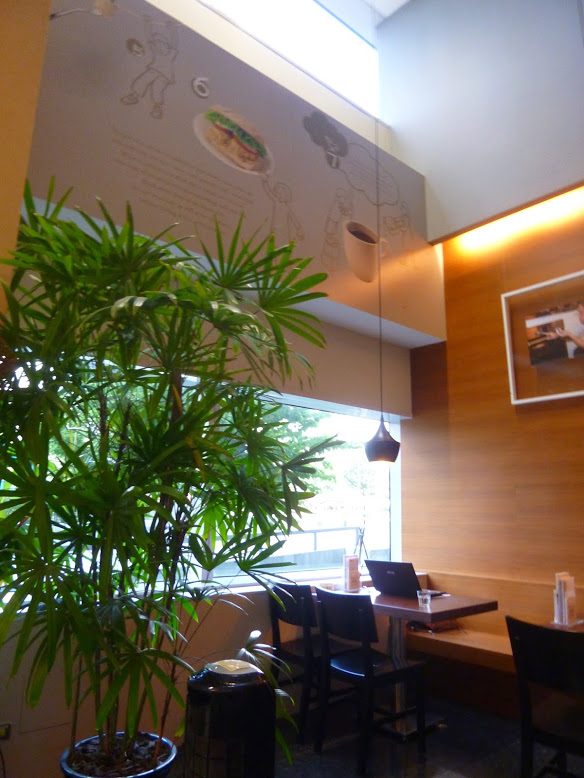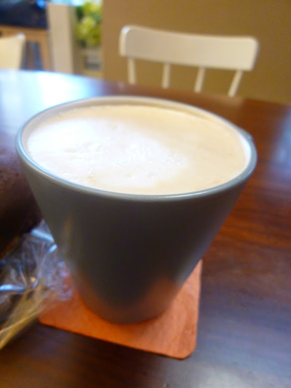 好在還是有找到自己想吃的麵包,拿了一個之後就先到後頭的餐飲區找座位~