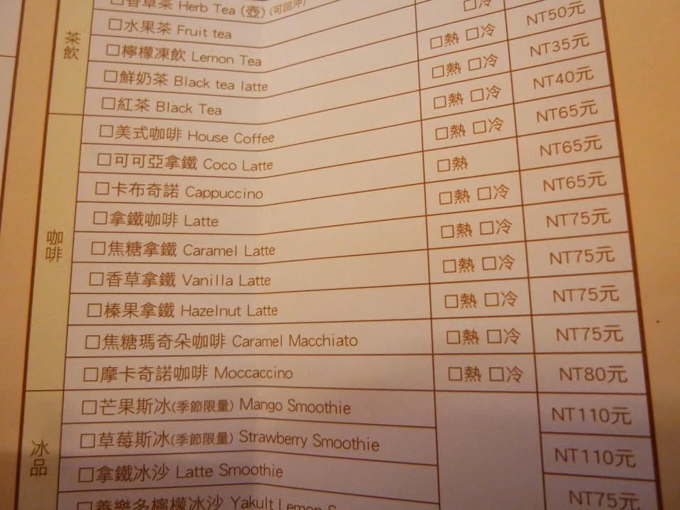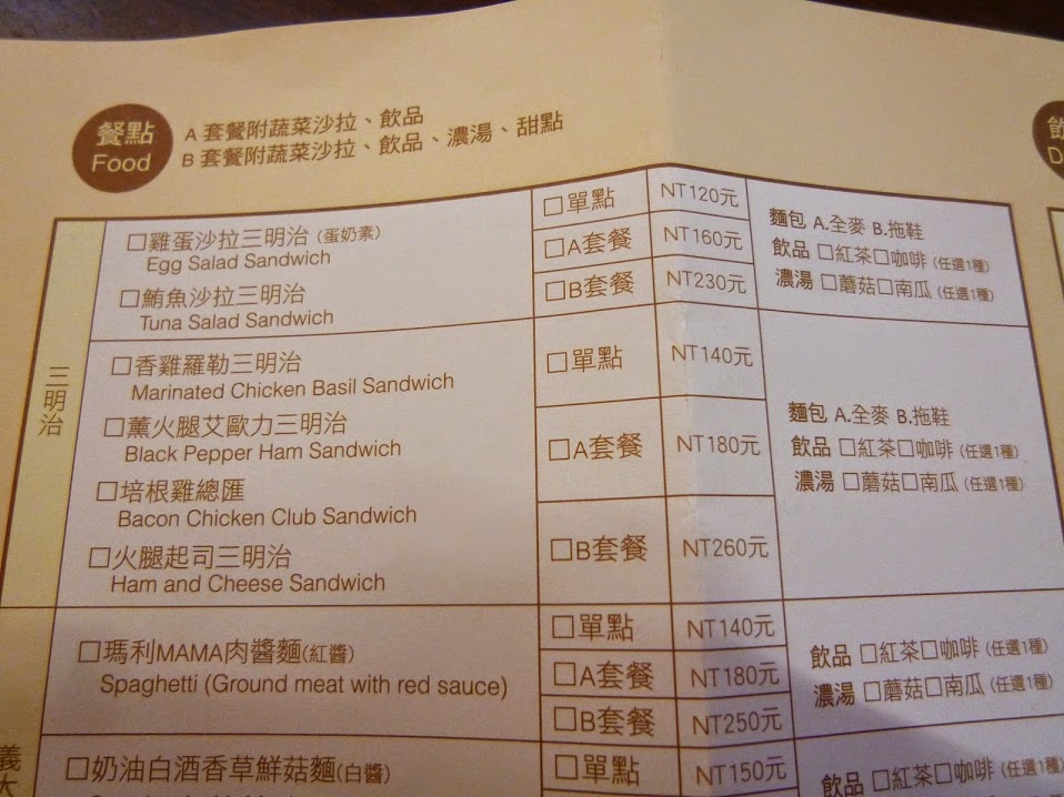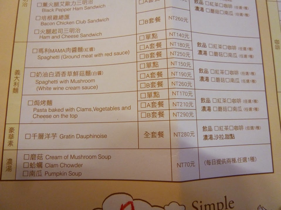 另一個較簡單的菜單則是清楚的明列著菜色,雖說是輕食下午茶