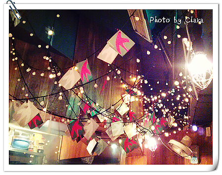 走進店內,天花板上掛著許多燈泡與裝飾的紙片,非常有節慶的熱鬧氣氛。