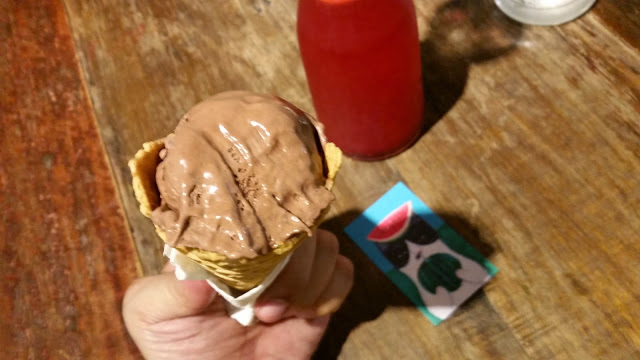 點選的是巧克力口味,但是他們家的冰淇淋感覺很特別,十分的厚實與豐富,入口時的感受更是綿密。