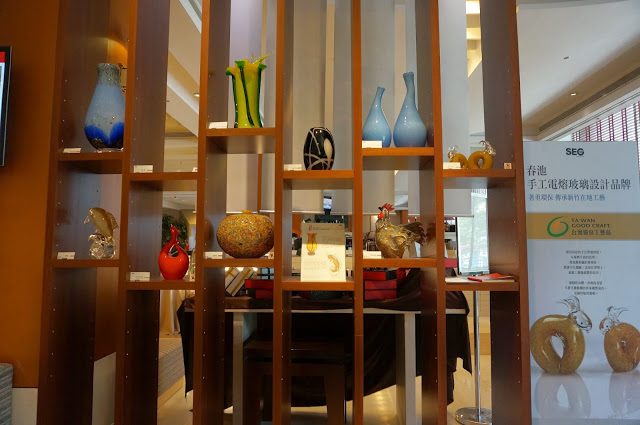 在大廳的一隅也有陳列展出,玻璃設計品牌的作品展出,為大廳空間中帶來一份文藝的氣息。
