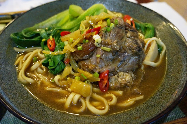哈哈~第一次吃到牛肉麵用刀叉在處理的,也算的上第一次在飯店裡吃上獨特而有趣的牛膝拉麵料理。