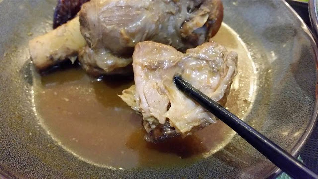 透過筷子先來輕夾起牛膝肉的部份,包含在這一區塊的肉質呈現出來就是很軟很嫩的感受,吃在口中更是一番享受,尤其趁上桌時熱熱的來吃更是相當滿足。