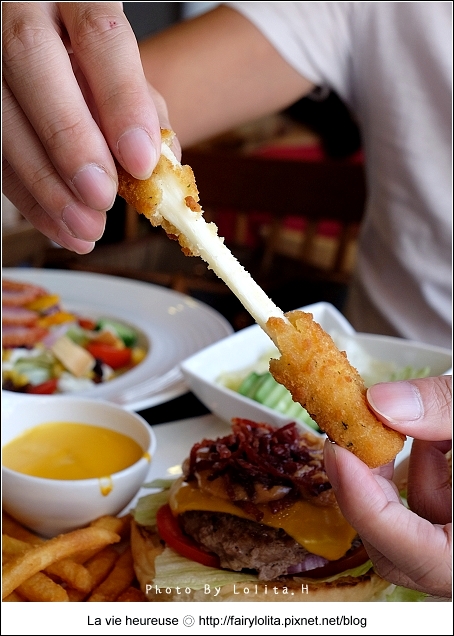 每次到這種賣漢堡的美式餐廳,我總很難無視起司條的存在,除了會流漿的半熟蛋,還有面對牽絲的玩意兒也舉白旗投降呀!像這種炸物,記得上桌就要先吃它,才能品嚐到它那熱騰騰保有溫度的最佳口感。