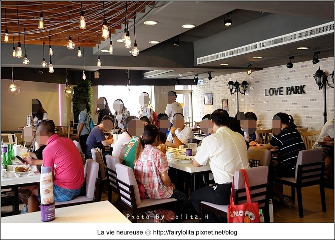 現在的裝潢像改頭換面似的,跟以往完全截然不同,記憶中的它是打著鵝黃色燈光,比較偏向速食店的環境,可是現在不僅採光變佳,桌椅質感更加講究,還加了綠色元素及復古小燈泡,連超人的大紅電話亭都搬來了呢!整個是好鄉村的美式風呀!