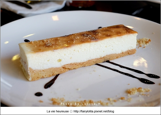 要說它軟滑,好像又帶了點海綿蛋糕的鬆軟口感,我想用較紮實的慕思來形容它可能最為貼切,起司香濃自然是不在話下,不過底層的餅乾表現就比較普通了,但瑕不掩瑜,至少也沒太影響整體的表現。