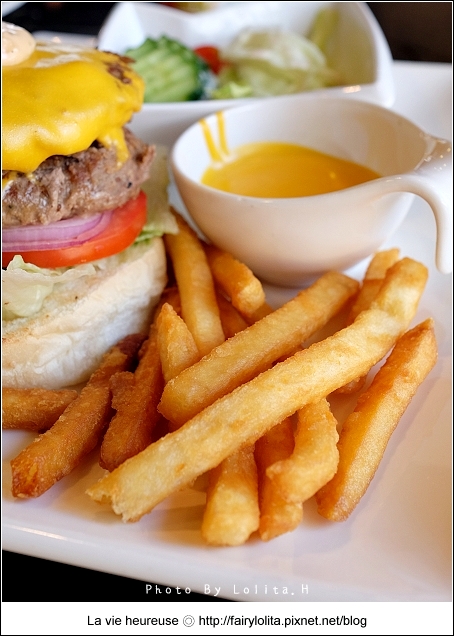 如果你喜歡豪邁吃肉的話,那麼點這道準沒錯,雙層牛肉就算了,還厚到讓你必需要張超大口才能啃到它,洪先生都說我吃到快烙A孩了(掉下巴)XD