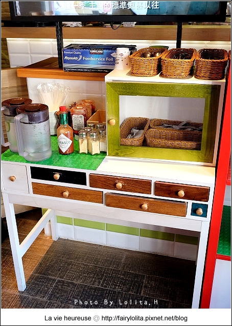 除了送餐,其它皆採自助式,舉凡白開水、餐巾紙、餐具及佐醬瓶,全都需要自行取用。