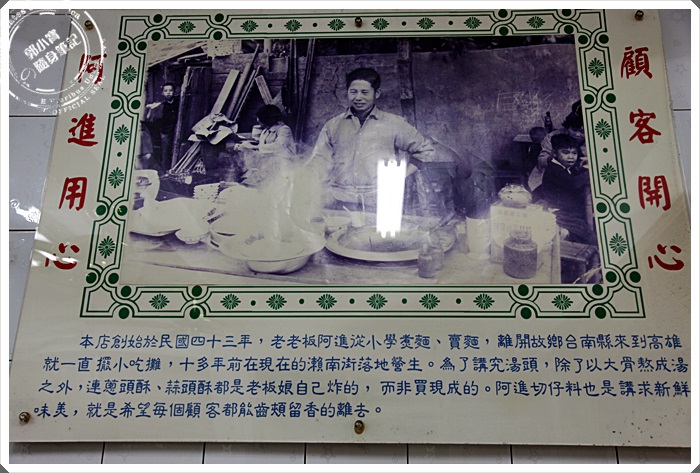 阿進切仔麵地址:803高雄市鹽埕區瀨南街148號電話:075211028首頁照片:手工古早味油蔥爆香,每一口都是60年的傳承心。鹽埕區的老麵店也相當的多,除了阿發切仔麵以外,切仔麵攤最有名的大概就是阿發切仔麵了,切仔麵有兩大武器,一個當然就是麵為主題的味道,另一種當然就是切仔料了,切仔料其實也是切仔麵的靈魂,好吃的切仔料可能會影響這家店的生意,阿發跟阿進兩家店的切仔料並不相同,阿發主要都是滷味切料,也就是都有先滷過了,阿進則是鹽水切料,只將食材新鮮或是鹽水燙熟後加熱切上盤,所以這兩家對我來說並不衝突,說誰比較好吃,我會說都很好吃!!!其實走一趟新樂街,大部份的老街都沿著新樂街往兩邊巷子擴展,阿進切仔料在瀨南街,另一頭就是有名的豬肚雞肉鱉名湯,這一條似乎就只有阿進切仔麵的燈火跟人潮,為老市場的屹立不搖寫下最好的寫照。店面本身不是很大,但是卻是人潮來來往往好不熱鬧,兩個老師傅的手從來沒停過,切料燙料煮料以外,還要抓麵煮麵,耳邊傳來的是熟悉的客人喊菜聲及老板俐落的剁料聲,咚咚咚的切個不停,當天到的時候已經是晚間8點了,從早忙到晚的阿進切仔麵一樣是熱鬧非凡,全家都在這邊工作,從早忙到晚,小小的一家店面卻經營了60年了,從阿公的年代到現在第三代傳人,偶而還可以看到南部人說的"頭家嬤"穿梭在人群中幫忙。南部人吃的有時候是美食,是美味,但是最重要的吃的是老店的溫度,吃的是60年來的老交情,只要不出任何大差錯,南部人是永遠不會喜歡創新求變。鐵板上的新鮮切料每天賣完就沒了,都是最新鮮的切料,大部份都以內臟類為主,在我們吃完要離開的時候,鐵板上的切料幾乎已經銷售一空,另外還有下面的豬肺,這是我第一次看到有這樣的切料,以前來的時候都沒有特別注意到,加上這次總共有三個大男人一起挑戰,所以我就毫不手軟的一次點足,也下手了我的豬肺初體驗。這就是第三代的老板,非常親切,即使在工作了一整天也是笑臉迎人,不管問它什麼問題她總是非常認真的回答,這個麵攤不僅是養家活口的工作,面對客人他還有一份責任,把阿公的味道傳承下去的責任,不想讓老客人回來吃的時候發現阿進仔不見了或是位道跑掉了,這是老店的精神與揹負的重責,老闆笑嘻嘻的跟我們訴說了許多,面對於我們這些新客人及一籮筐煩人的問題,它沒有繁悶,只有滿滿的感謝,因為現代的年輕人已經不想去懂得老味道了。