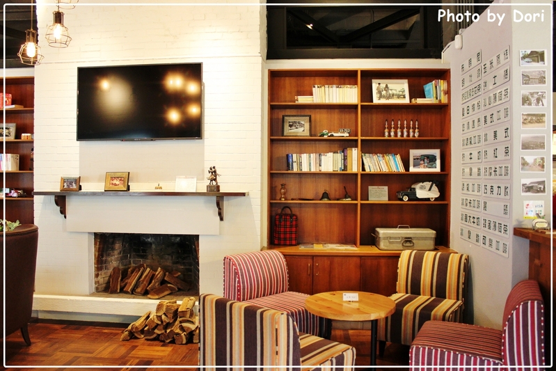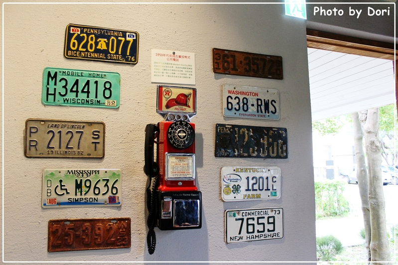 內部空間則是美軍協防時代1950 - 1978的一些復古裝飾,門牌、古董投幣式電話、打字機等,壁面設計還增添了紅色 磚頭,再往內一探還有許多的座位區。