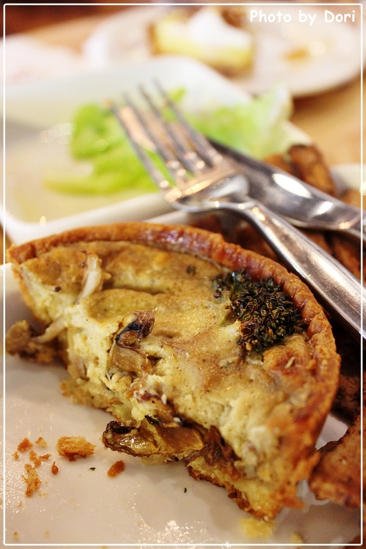 每塊鹹派下方都有個紙模,建議直接取出放入盤子中以刀叉切取,這樣也不容易將派皮弄碎。另外鹹派算是暢銷商品之一,晚去可能會吃不到,可電話詢問店家是否能作預留。