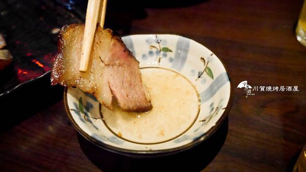 不喜歡太重口味的朋友,可以沾著川賀燒烤居酒屋特製的酸醋醬汁大口吃鹹豬肉,喔!
