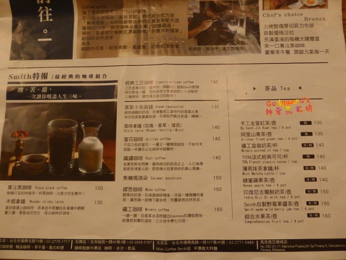 比對這些外帶的價格,顯示出coffee smith的餐點不只著重本身,還包含了其舒適的環境,外帶跟內用的咖啡價錢幾乎相差了兩倍呢!