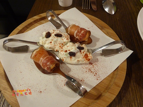 右邊是帕馬森風乾火腿佐密瓜,火腿不乾柴、密瓜不軟爛,換句話說就是穩扎穩打啦~