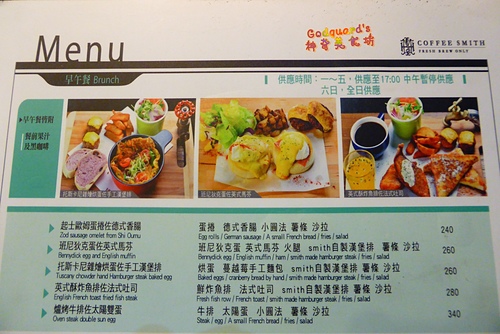 既然看見門口外貼著MENU,就先來給大家介紹一下:coffee smith的餐點有早午餐(brunch)、私房料理(pasta & risotto)與義式小食(appetizer)三類
