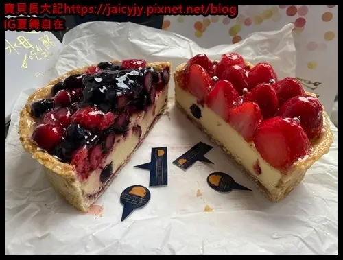 草莓塔裡面也會看到一點點藍莓的蹤影,而藍莓塔也有草莓作陪襯