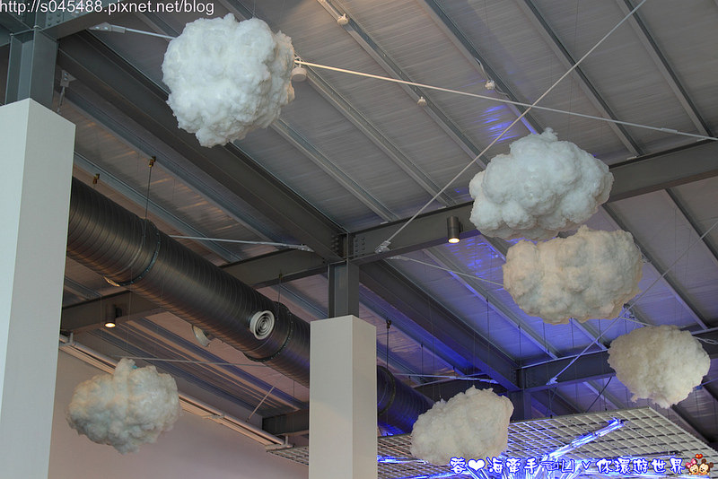 館內屋頂上營造出一朵朵小白雲,真的是很有趣,走累也有幾張小桌椅可以休息