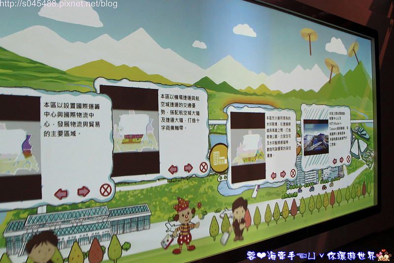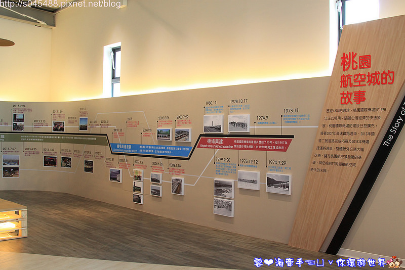 裡頭空間上屬於長型設計,周邊都是介紹航空城的故事