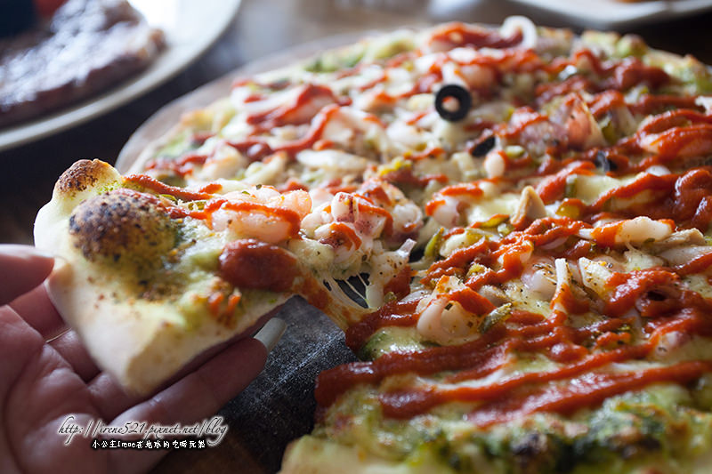 猶豫的選了比較少見的青醬口味:「青醬海鮮比薩」(NT.290)。