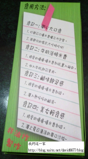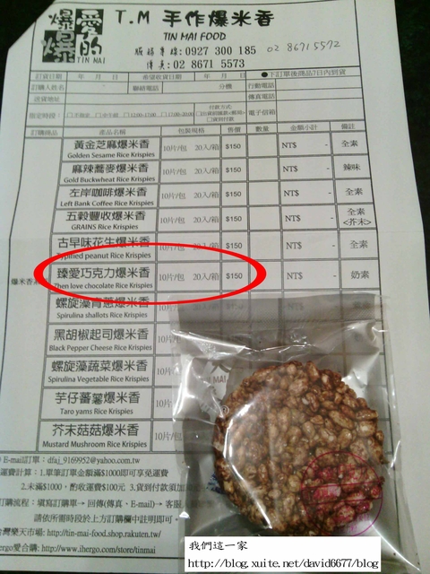 店家也很貼心的提供他們產品的訂購單,上面除了有聯絡方式之外,還有他們產品的包裝、數量和價格,讓人一目瞭然。這張除了自己親戚朋友想訂購可以參考之外,因為現在很多公司都會團購,所以當然也很適合公司團體訂購參考囉!