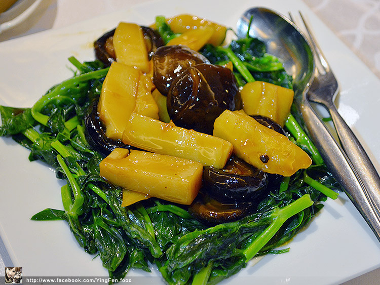 豆苗顏色是好鮮亮的綠色,吃起來好青脆,上面是香菇和筍子,香菇咬下去會在嘴裡噴汁,保有好多水份,筍子口感帶有一點點脆脆的很好吃。