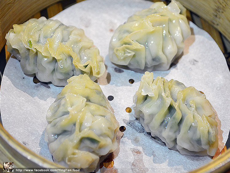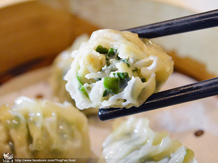 韭菜餃外皮一樣也是很薄,薄到稍微有點半透明,裡面深綠色的韭菜,韭菜味道很濃郁,也可以吃到一點點的小碎肉。