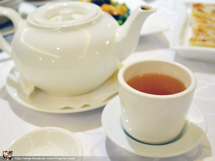 共有五種茶,包種春茶、四季烏龍茶、鐵觀音、普洱茶和香片,我們點的是普洱茶,剛開始喝的時候,茶的顏色比較淺。
