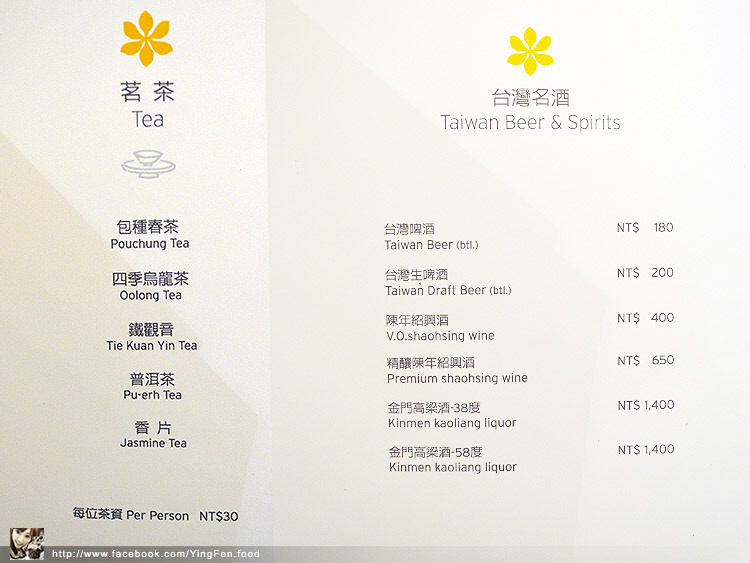 訂價:NT$130起(須另加一成服務費)