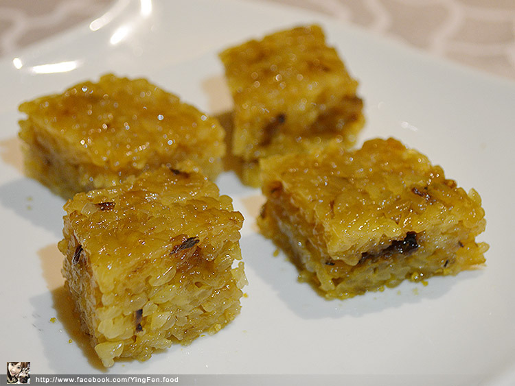 看起來像油飯一樣,其實是甜的桂圓糯米糕,吃起來帶有點黏性,卻不會黏牙齒,有桂圓香濃味道,非常好吃。
