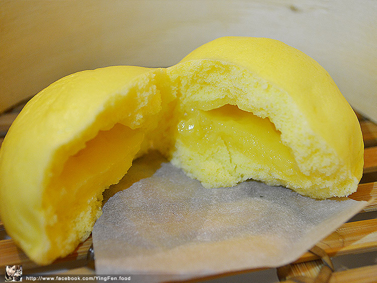 顏色非常的亮,用手一剖開,可以感覺到奶皇包的外皮很軟帶有點彈性,內餡吃起來奶油味道超濃郁,嘴巴充滿了濃濃香味,感覺好幸福喔!