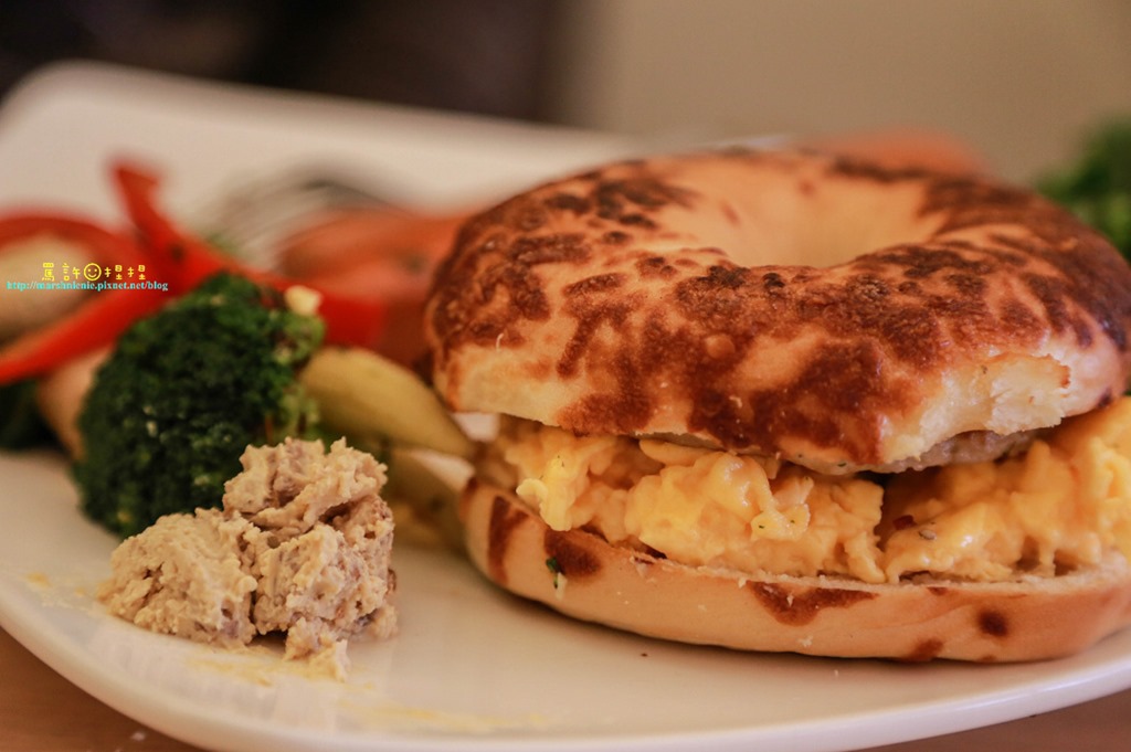 ▼自己diy,把薯餅和蛋夾在貝果中間