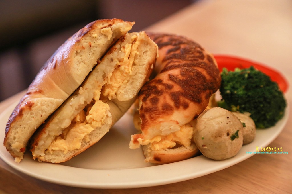 因為我不喜歡單吃貝果或麵包類的東西,所以就把炒蛋和薯餅夾在貝果中間一起吃,