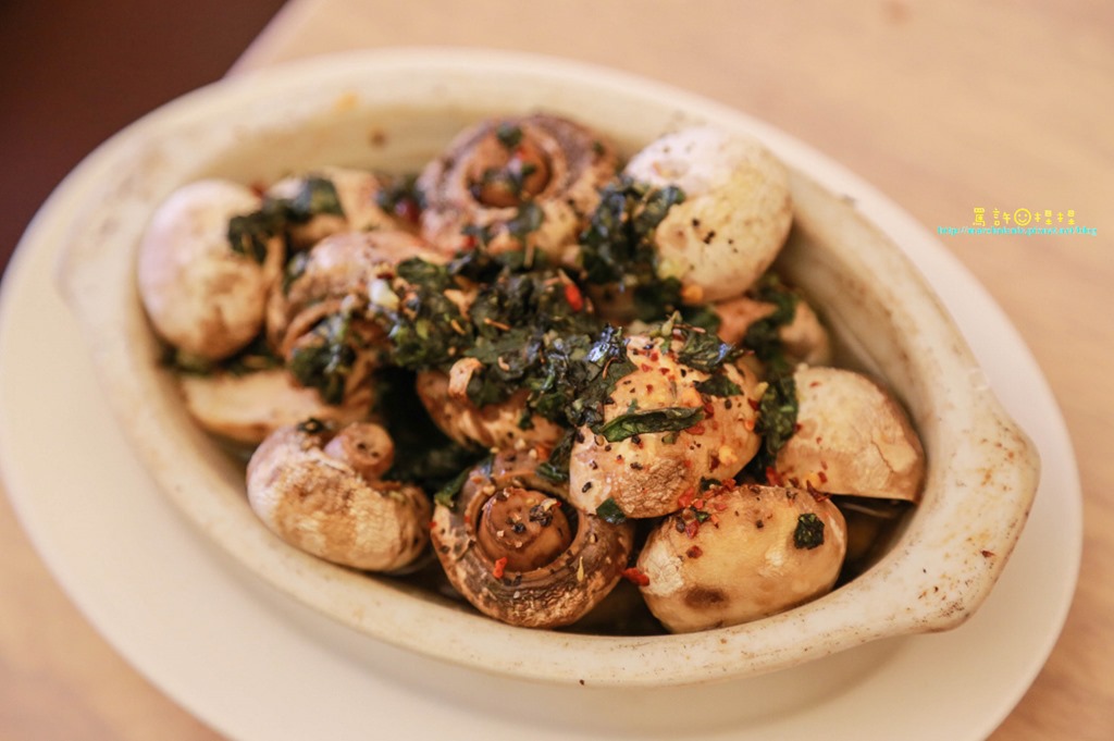 這裡的蘑菇因為搭配了超多的羅勒,所以吃起來超級香,而且香蒜的味道有包覆在其中,