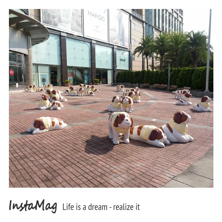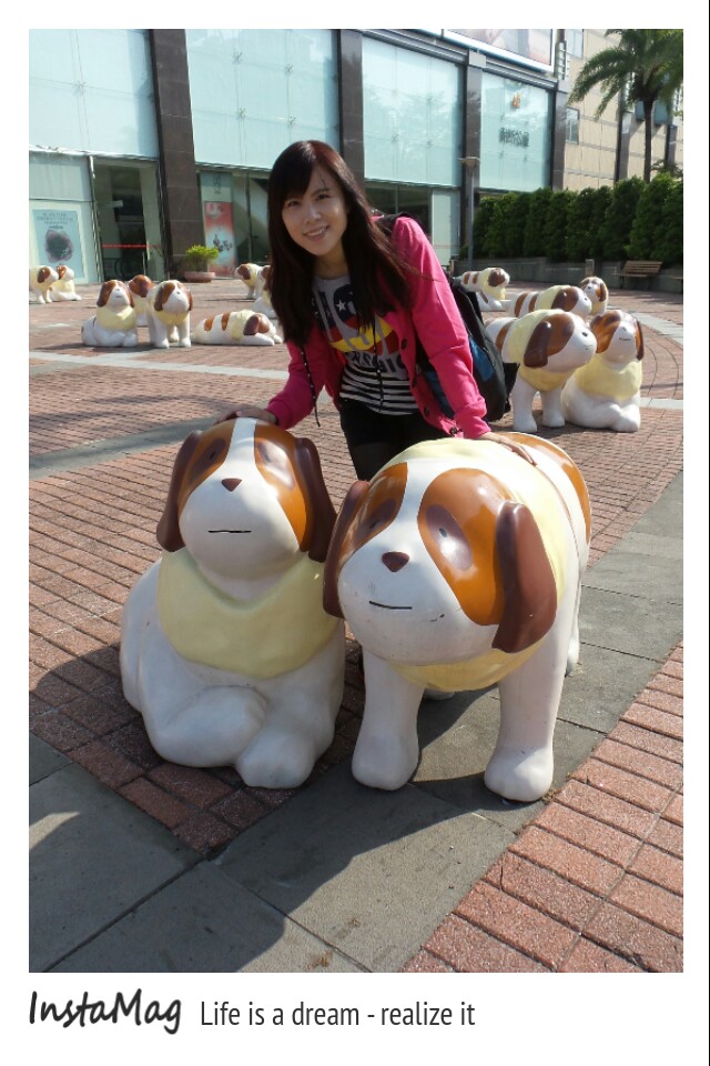 水幕廣場上各種姿態可愛的來福狗,有的站,有的坐,有的趴,有的臥,通通都是可以近距離與牠一起拍照的喔,要記得溫柔對待,雖然牠蠻大一隻的,但別直接騎上去,以免破壞了牠