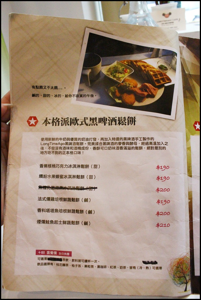早午餐也是全日供應,加六十元會多一杯飲料,可續一次,