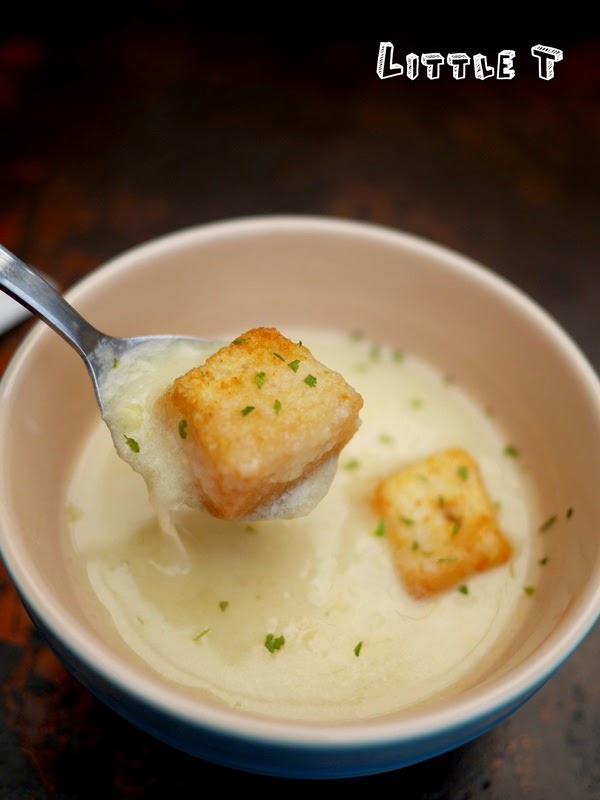 洋蔥濃湯喝起來還算濃郁,但美味度soso,裏頭有兩個麵包丁,但個人不太喜歡這種吸滿湯之後的口感....