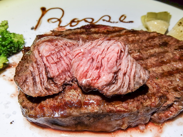 餐盤頂上的Rosse 字樣是紅酒醬, 可以沾來吃的