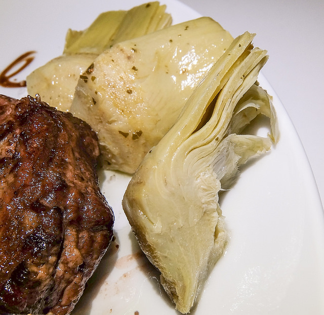 很簡單的擺盤, 配菜很特別,是青花菜與朝鮮薊
